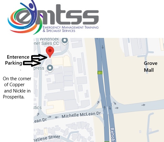 From Michelle McClean Road: Once you have turned into Prosperita from the main road (Rehoboth Road) into Michelle McClean road, turn first right into Nickel Street, EMTSS are situated on the corner of Nickel and Copper Street.